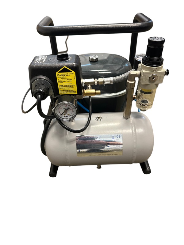 NITAIR Compressor (CBI 200) features: · Silent Running · Automatic Operator · In-line regulator with moisture trap · Line pressure gauge · Tank pressure gauge · Thermally Protected · Suitcase design · Portable