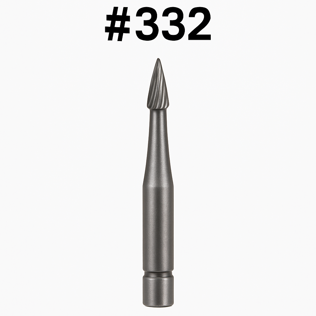 The Carbide Latch Bur #332 is a precision-engineered cutting bur designed for low-speed latch-type handpieces. Its tapered fissure cutting head provides excellent control for shaping, smoothing, and removing material with accuracy. Manufactured from high-grade carbide, it delivers long-lasting sharpness, reduced vibration, and smooth cutting performance in both restorative and surgical procedures.